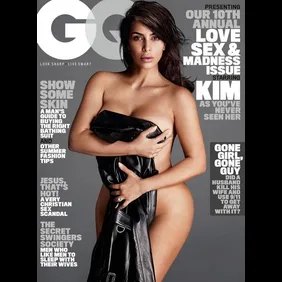 GQ has officially revealed the cover of it's "Love, Sex, and Madness" issue and gracing the cover for the first time is Kim Kardashian-West. Naturally, she appears nude on the cover with a black leather jacket clinging on to her curves for dear life.