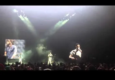 Drake couldn't make it to Sunday night's MTV Video Music Awards, so he accepted his award (Best Hip-Hop Video for "Hold On, We're Going Home") in Boston instead. Captured on video by a fan in the audience, Drizzy's speech runs through all of the essentials: he thanks God, Lil Wayne, the fans, etc. He does, however, manage to poke a bit of fun in the process.