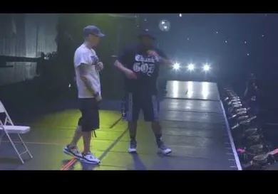 Em, who was challenged by Dr. Dre is the first to take the plunge, subsequently nominating RiRi on the spot. While we saw pieces of the footage via fan-made Instagram clips earlier this week, the full professionally shot clip is now online.