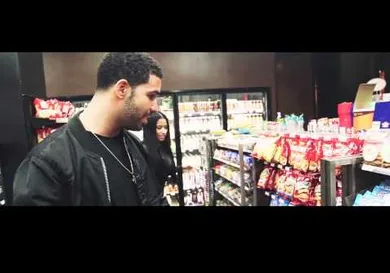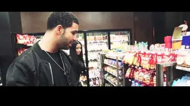 In a newly-leaked video, we can see them shopping for snacks in what looks to be a bodega on the set of Usher's recently-released "She Came to Give It to You" video. Drake says Nicki can buy whatever she wants, and Nicki responds by playfully teasing him about being able to afford the food.