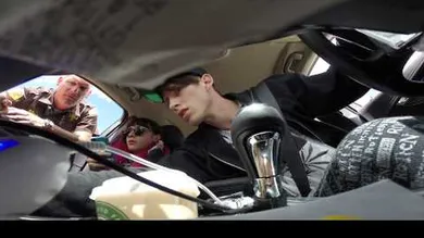 With his Go Pro on deck, Kelly gets through most of the conversation without the cop realizing he's being filmed. The highlight comes when the officer asks what a green medication container in the car is used for, to which MGK casually replies "weed".