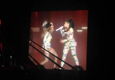 Beyonce and Jay Z took their On The Run tour to France, and during Bey's set she brought out a very special guest, as none other than Nicki Minaj strolled out, reciting her verse from the remix. It definitely got the crowd going.