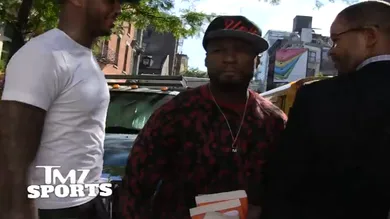 In this new TMZ clip, we hear a paparazzo attempting to ask a clearly uninterested Carmelo about the Rice scandal, before who should appear but 50 Cent, who's ready to shoo the reporter away with his effortless blend of humor and disdain. He and 'Melo were probably working on some SMS stuff together.