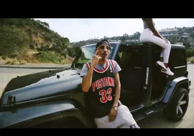 Rockin his hometown Detroit Pistons jersey (Grant Hill to be exact), Dusty takes out his new Jeep and hits the open road with his sexy lady in this ball-out video. The track itself is produced by Cardo.