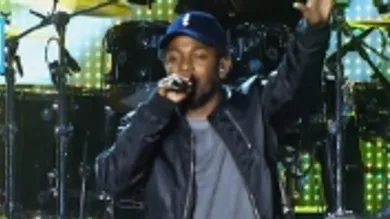 Rockin' another "i" baseball cap, K. Dot takes the stage in front of thousands of excited fans and performs his new self-empowering single “i”, which is also serving as the theme song for the 2014-2015 NBA season.
