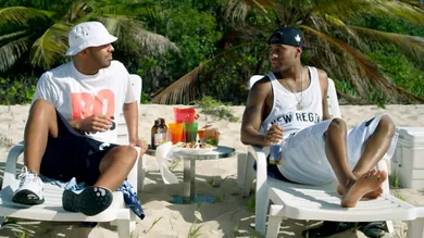 Kicking off like a commercial for Corona, P Reign and Drake's "DnF" video shows the two OVO artists cooling on the beach (drinking Red Stripe, not Corona) and lamenting the fact that they didn't think to bring any women with them on their vacation. Ever the sly skirt chaser, Drizzy then reveals that he "went into town" and found some particularly fine, well-paid ladies who would care to hang with your boys.