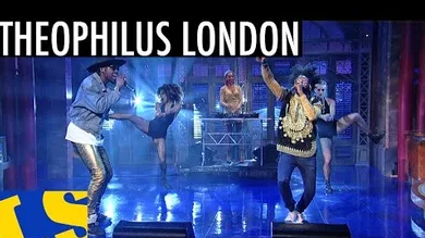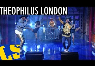 The video for Theophilus London and Jesse Boykins III's "Tribe," taken from London's newly-minted Vibes, consists of the Brooklyn rapper/singer/dancer/fashionista dancing in shiny gold pants, a jean jacket and a wide-brimmed hat that makes Pharrell's look like a fedora in comparison. Some talented backup dancers appear behind him, in front of a white background. When London took to the Late Show With David Letterman last night to perform the track, he gave us an almost identical performance to go along with it.