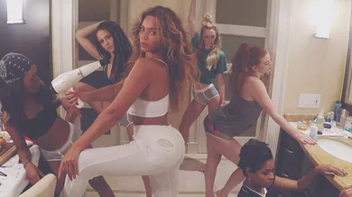 In the playful video, Beyonce dances around her hotel balcony, before moving the party and fun inside to the bathroom and bedroom where she even teases us with a twerk or two. Now who doesn't wanna see Beyonce in her underwear shake her butt?