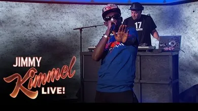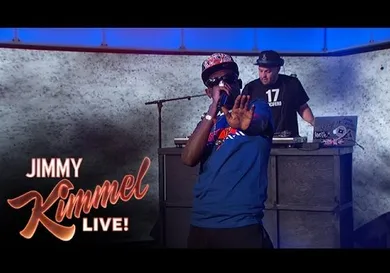Just a few hours after he debuted the French Montana remix video to his smash hit single "Hot Nigga," Bobby Shmurda performs the clean version of the track on Jimmy Kimmel Live. Performing with two models and a hype man, the emcee captures the instrumental's inherent energy, effortlessly moving the crowd.