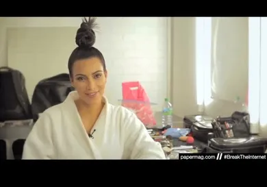 While the internet did survive after Kim Kardashian attempted to break it with her Paper magazine ass-out photo shoot, Kim definitely helped everyone's traffic go up a bit that day. Now that we're a bit removed from the cover, Paper has released a short behind-the-scenes video from the day of the shoot, where they have Kim Kardashian answer some questions. She speaks on what she's taught Kanye West about social media and vice versa, her favorite tumblrs to check out, and the weirdest story she ever read online about herself.