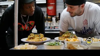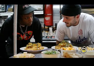 Joey Bada$$ continued to celebrate the release of his debut album, B4.DA.$$, by turning one his favorite childhood dishes and single title "Curry Chicken" into a new dish for Brooklyn chicken & waffles spot Sweet Chick. Joey hangs out with the restaurant's owner, John Seymour, as they search for some new vinyls before heading to the kitchen to cook up curry chicken and waffles. After serving up the "Bada$$ Waffle," the two decide it's necessary to feed their family and friends the same dish- and it even gets a stamp of approval from Joey's mama. Watch it go down above.