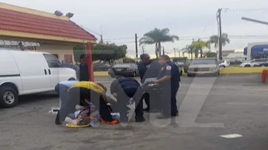 Suge's lawyer claims that Suge wasn't attempting to kill either parties involved, he was attempting to flee because he feared for his own life. The lawyer claims Terry and Bone had guns. After Suge makes a run for it in his car, another man approaches Bone, who is now lying on the ground, and removes something from him that could very well be a gun, before putting it in his own waistband.
