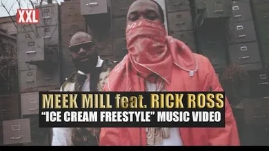 Now, Meek's freestyle has blown up to the point that he's releasing two "Ice Cream" videos, the first of which we get today. The "street video" shows Meek and his MMG boss Rick Ross mobbing in some roughneck terrain. Meek spits bars for the entirety of the three minute video, while Ricky does a pretty good job of standing next to him.