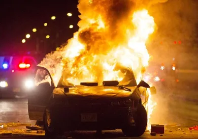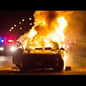 After a lengthy standoff between 20-30 police officers equipped in riot gear and a crowd of approximately 200, a gas station was set and cop cars were smashed. Someone in the crowd reportedly shot at officers. Later, several local businesses were set ablaze, including a BMO Harris Bank branch, a beauty supply company and a O'Reilly Auto Parts store.