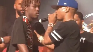 Plies is currently touring the country on his "Find Your" tour, and last night's stop at Club Coliseum in Tallahassee was marred by some physical violence. In the Intagram video above-- taken by a fan in attendance-- we see a crowd member onstage attempting to confront Plies. The rapper plays it off casually, trying to get the man offstage before security did so in a more forceful manner, and the man leans in to the mic to say what sounds like "color money" before tackling Plies offstage.