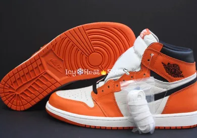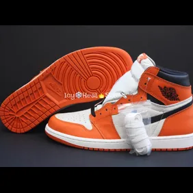 The kicks feature the same black, white and orange colorway of the original "Shattered Backboard" 1s, although this pair opts orange overlays throughout the silhouette.