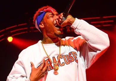 Fetty Wap first announces his presence halfway through the performance by rising on a pillar through a cloud of dry ice and belting his signature tag: "Remy Boys....yaaah!" Fall Out Boy backs him with their own interpretation of the Trap Queen beat, which is kind of a bummer. The heavy rock vibe is dubious at best, especially considering the catchiness of the original beat, but at least he seems to be having a great time up there.