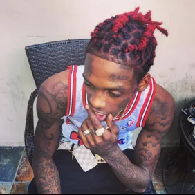 Dex grew up in Englewood in the South Side of Chicago, one of the most dangerous neighborhoods in the city. The area is home to other famous rappers, mostly of the drill scene, like Chief Keef, Fredo Santana, Lil Reese, and Lil Durk, the latter with whom Dex went to high school. Before rap, Dex spent much of his time hustling in the streets; he claims to have been selling drugs as recently as 2015. His decision to get out of the streets and pursue a music career was prompted by the loss of his mother. She died of breast cancer in September 2015, and Dex commemorated her passing with a tattoo of her name on his neck and another one of the breast cancer awareness ribbon on his cheek. Dex has a young daughter, with whom he can be seen in the picture above.