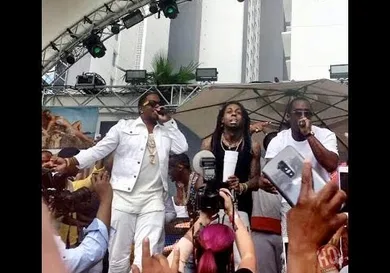 Mase reunited with his former boss, and the pair was joined by someone not on the original track, but a legend nonetheless--Lil Wayne--who recites all the lyrics with a tall styrofoam cup in hand.