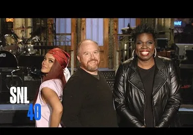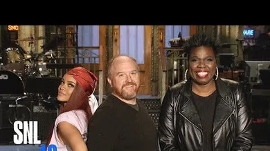 To build hype for the occasion, RiRi is starring opposite host Louis CK and cats member Leslie Jones in yet another awkward promo clip. Most of the discomfort is in the script, but we're hoping there'll be a better exchange between Rih and CK-- who are both hilarious in their own right.