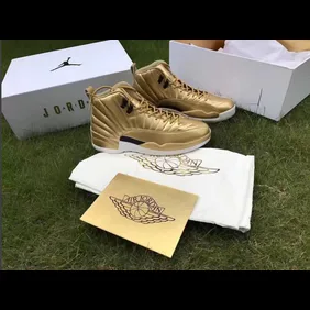 Jordan Brand can't stop won't stop rolling out Pinnacle "Metallic Gold" Air Jordans. Earlier this week it was revealed that a glossy, golden Air Jordan 1 Low would be hitting retailers and now the word is out that this Pinnacle "Metallic Gold" Air Jordan 12 is in the works as well.