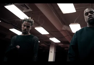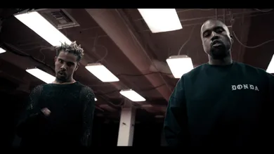 Featuring red lighting, a jumping mob behind Mensa (similar to the one that accompanied Kanye when he debuted "All Day" at the BRIT Awards) and sparks galore, the video looks great, and not even that expensive. Mr. West stunts in a Donda crew sweatshirt and Mensa alternates between going shirtless and wearing a web-like, partially see-through shirt.