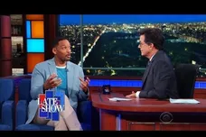 Colbert is in character and Eminem plays along as the straight man in this "Between Two Ferns"-style interview. They discuss Marshall's Michigan musical influences -- “I imagine Motown? Ted Nugent? Obviously Seger?" said Colbert -- as well as his self-styling as more of a political rapper or a "booty rapper," his new song "Phenomenal" and role as soundtrack executive producer for "Southpaw," and more.