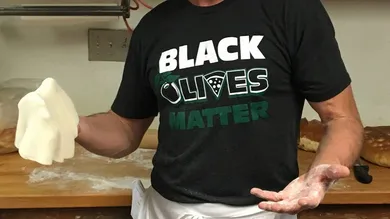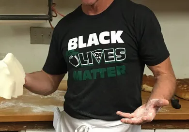 Paisano's initially made headlines for using the same phrase on a sign outside of their restaurant but now they've really embraced the "no publicity is bad publicity" mantra by selling $20 "Black Olives Matter" shirts and hats.