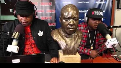 Jadakiss took the Metro North down from Yonkers to Manhattan yesterday to appear on Sway in the Morning to promote his upcoming album Top 5 Dead or Alive. Jada rocks the #T5DOA hat and he brought the bronze bust of himself that appears on the cover of the album. The two of them chop it up re: the album and Jada lists his top 5 rappers before explaining why he wasn't a fan of ghostwriting for Diddy.