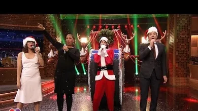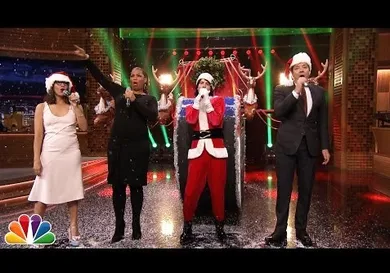 Thanksgiving may be done (sad face emoji), but we can still enjoy some festive parodies pertaining to the holiday, as well as the holidays up-next: Christmas and Channukah. Last night Jimmy Fallon got into the spirit things, with a few parodies on some of the year's biggest records, and he enlisted Rashida Jones to help.
