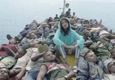 The record has an incessantly catchy hook, which could propel it to "Planes" status. We'll have to see how it takes off. Behind all the catchiness though, there's a message. For the visual, M.I.A. makes a socio-political statement, with hoards of refugees climbing up fences and trailing behind her on a boat, as M.I.A. walks on water.
