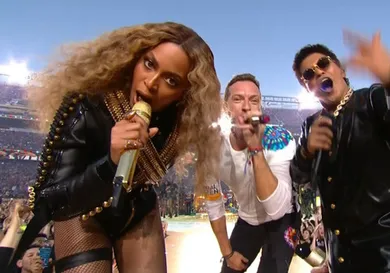We knew Beyonce had some kind of surprise for us tonight, and it turned out it was a world tour, but it wasn't revealed before she threw down with Coldplay and Bruno Mars during the halftime show. Things kicked off with Coldplay, who performed a range of hits including “Viva La Vida,” “Paradise” and “Adventure Of A Lifetime,” before Bruno took over with his infectious Mark Ronson collab, "Uptown Funk".