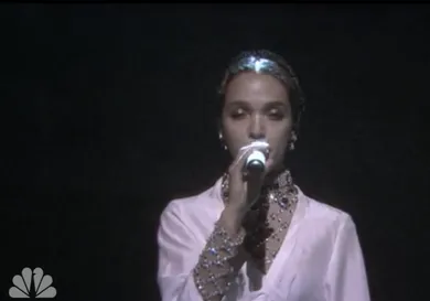 For her return to Jimmy Fallon, FKA Twigs is accompanied by a live band matching in their all-white attire, while beaming white lights shine upwards from the floor, creating both a futuristic and hazy feel. FKA Twigs moves slowly and precisely, not so unlike her music. Towards the end of the record, the singer strips down (slightly) and dances for the audience.