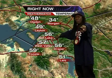 Flava Flav actually does a pretty excellent job of things, considering how confusing it can be to talk in front of a green screen while pretending you can see everything behind you. Hilariously, Flav clarifies that “he isn’t really a weatherman, he’s a rapper.” I guess in Utah, people still don’t know who Flava Flav is. The Public Enemy hypeman also appeared in the show’s “Song of the Day” segment, which you can watch below for maximum caucasity.