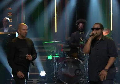 Last night Cube and Common were the musical guests on Fallon, where they performed the funky, feel-good number, "Real People," off the film's soundtrack. They were backed by The Roots, who also helped on the vocal tip, creating quite an impressive performance. Watch it above.