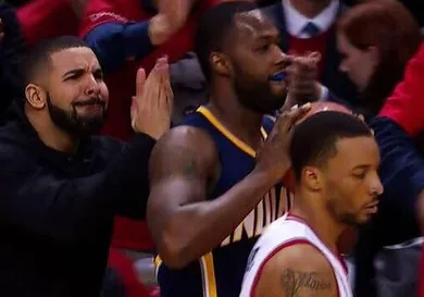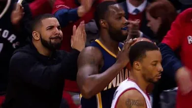 During a critical 4th quarter possession by the Pacers, guard Rodney Stuckey lost control of the basketball and turned the ball over out of bounds right in front Drake…. and that’s when Drizzy quickly stood up to Stuckey and aggressively applauded the point guard for his mishap. While it happens rather fast, it sure is hilarious to see Drake's facial expression in the process. After all, this play did help spark the Raptors come from behind victory.