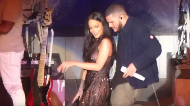 Last night, Rihanna brought her "ANTI" tour to the Forum out in Los Angeles, and the crowd was blessed with a special guest. Drake came out all non-chalantly mid-way through RiRi's single "Work" to perform his part with her. The two did their usual thing, aka Rihanna did a bit of grinding all up on Drizzy while he enjoyed the view-- all we can think of now are his lyrics, "Don't you see RiRi right next to me?", indeed, we do.