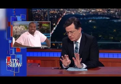 After showing a few clips from the interview, Colbert launches into his own speech inspired by Kanye's remarks, making some absurd claims about the length of hot dog buns, fashion that stops global warming, computers that fix racsim and much more. Is this a more tasteful parody than Kimmell's? Watch it above.