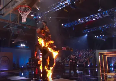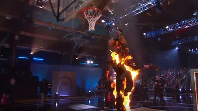 In the finale, Maberry locked up The Dunk King crown by leaping over Shaq but the craziest moment from the show was when Kenny Dobbs dunked over a dude who had been set on fire.