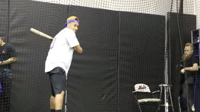 Neymar just didn't want to scuff up his new "Neymar" Air Jordan 5s when he was in the batting cages at Citi Field last night, right? That's the only possible explanation for such a ridiculous swing from such an amazing athlete.