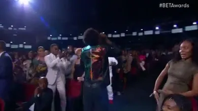 One thing that's gonna serve Desiigner well as he tries to prove his worth in the game is that he never shies away from the big moments. During his debut at the BET Awards, he bounced around like a kangaroo on speed, screamed into the mic (when it wasn't whirling in the air), and dabbed up and down the celebrity-flanked aisles. Tyrese certainly enjoyed it. Future, whose style Desiigner has been accused of biting, is also set to perform tonight, and he was presumably backstage during "Panda." Too bad, as his facial expression could've spawned years worth of memes.