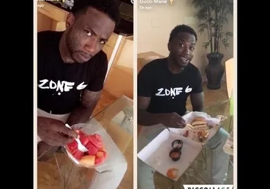 Gucci Mane emerged from jail in May a new man, skinnier than ever, and his girlfriend Keyshia Ka'oir has been determined not to let him put any weight back on. This week, he documented his food struggles on Snapchat -- all he had to eat was Cocoa Pebbles, popcorn, and a fruit salad given to him by Ka'oir. He unenthusiastically ate the fruit salad and begged someone to go to Ann's Snack Bar and bring him a Ghetto Burger, flaunting a fan of $100 bills as payment for the deed.