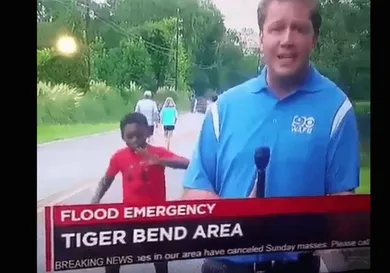 While many people living in Baton Rouge, Louisiana right now are currently facing devastation due to the insane flooding going on, there’s one kid making the most of his situation. During a live report from a local news station, a young boy decided to discreetly stand behind the reporter & show off some of his hilariously-awesome dance moves unbeknownst.