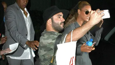 A crowd had gathered outside of the SVA Theatre in NYC once word spread that Beyonce and Jay Z were attending a show there. As the power couple were departing to their limo, a fan got a little to snap-happy with the selfies and Jay had to strong arm him away from his wife. Of course, a bodyguard quickly stepped in to do the heavy lifting, but we’ve no doubt Jigga was prepared to box the aggressive fan out himself.