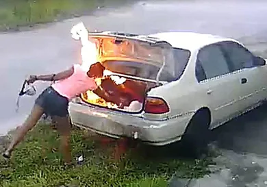 "I have no idea who she is," former automobile owner Thomas Jennings told local station WFTS. Jennings exited his residence at the urging of his alarmed roommate only to see the giant blaze that was once his Honda.