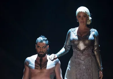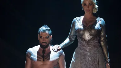 Amber Rose and her Dancing With The Stars partner, Maksim Chmerkovskiy, drew on inspiration from "Game Of Thrones" for their latest performance which saw Amber taking on the role of Khaleesi, and Maksim playing the part of Khal Drogo.