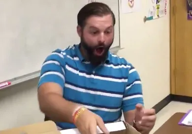 His reaction was priceless. Walser bursted at the seams with joy when he found out it wasn't just a prank and that his student had really hooked him up with a pair of the classic Js that he has wanted since he was 12.