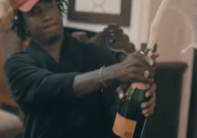 In the video for "Hungry n Lurkin," Camp appears often as appears on the cover of Lyric Ave: wearing a red hat and drinking from a champagne bottle. His friends have whipped up an incredible meal, and he is getting ready feast.