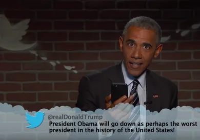 In this second edition of President Obama reading mean tweets, he rattled off one of Donald Trump's many jabs at him in which Trump tweeted, "President Obama will go down as perhaps the worst president of the United States!"