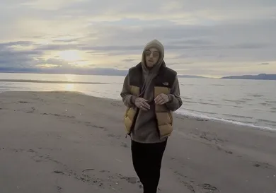 Taking a more scenic approach, Mac posts up on the beach with the sun rising behind him and roams the shoreline beach in some sweats & a puffy North Face vest in this TreeJTV-presented clip above. Check it out.
